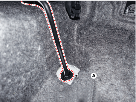 Отделите напольный ковер (А), чтобы освободить место для снятия обогревателя задней части салона. канал.