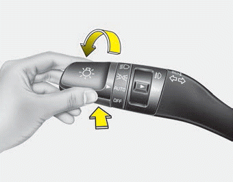 (3) Если переключатель света потянуть на себя, когда дальний свет включен дальним светом