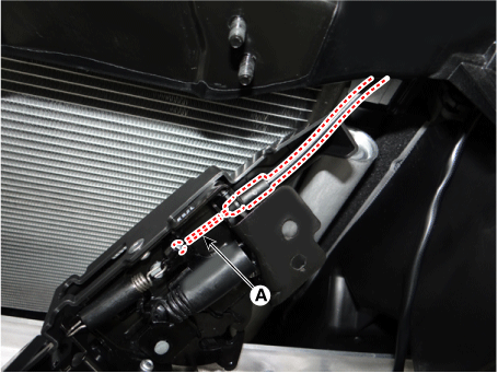 Отсоедините трос замка капота (А) и снимите узел замка капота.