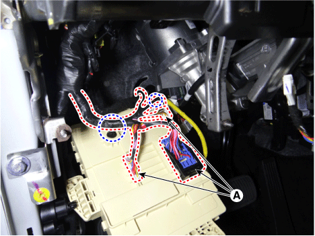 Отсоедините разъемы (А) от блока интенсивной терапии, а затем отсоедините проводку. монтажные клипсы.