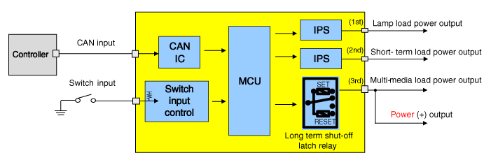 Управляет внутренним реле, получая команду от IBU через сообщение CAN.