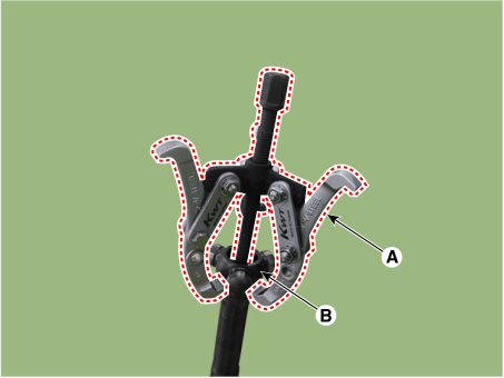 Снимите крестовину в сборе (В) с приводного вала с помощью съемника (А).