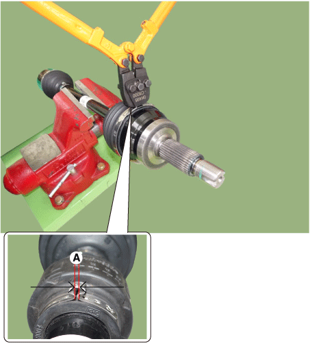Закрепив карданный вал в тисках, снимите узел шарнира (А). с помощью SST (09526-11000).