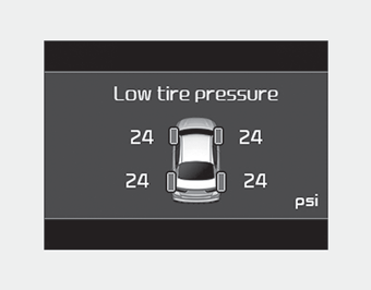 Когда загораются предупреждающие индикаторы системы контроля давления в шинах, давление в одной или нескольких шинах значительно ниже нормы.