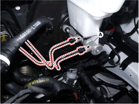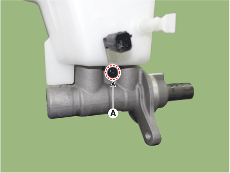 Отсоедините разъем датчика уровня тормозной жидкости (А).
