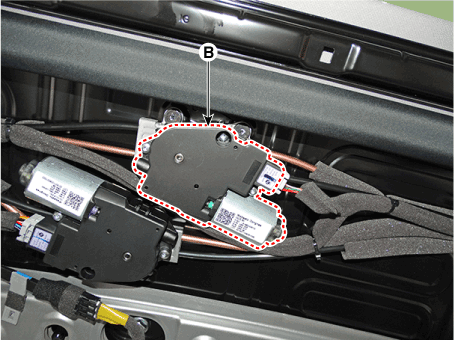 Ослабьте крепежные винты и снимите ролик мотора подвижного стекла (А). слепой двигатель (B).