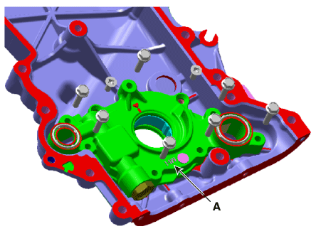 Не отсоединяйте масляный насос (А) от крышки цепи привода ГРМ, поскольку он поставляется в виде крышки цепи ГРМ и масляного насоса в сборе.