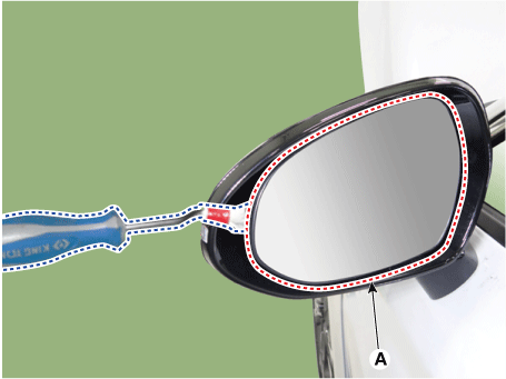 После вставки плоской отвертки, как показано на рисунке ниже, снимите зеркало (A), приложив небольшое усилие.