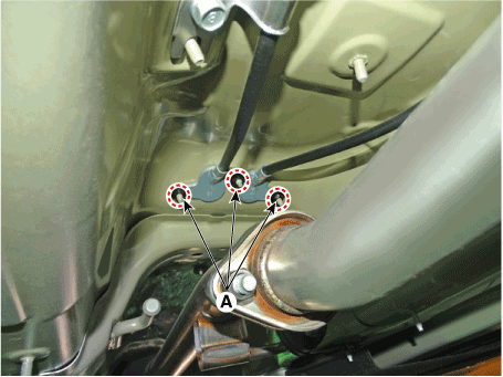 Ослабьте гайки крепления кронштейна парковочного троса (А).