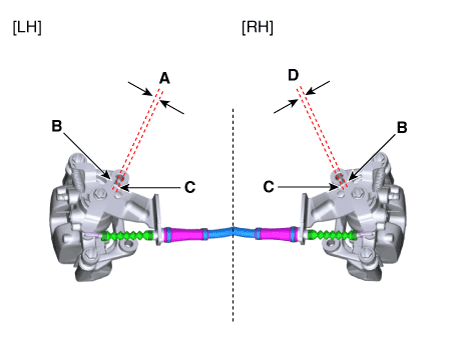 Затяните регулировочную гайку и затяните трос стояночного тормоза до упора. сумма расстояний (A и D) от точки остановки до активирующего рычага (B) и до стопора (C) менее 3 мм.