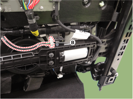 Отсоедините разъем двигателя после снятия сиденья. A : Двигатель передней высоты