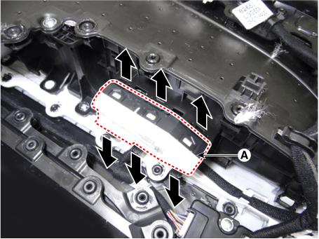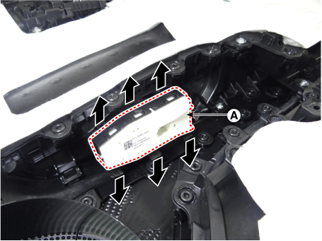 Снимите вспомогательный переключатель электрического стеклоподъемника (А), нажав на держатели в направление стрелки.
