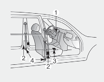 Система преднатяжителей ремней безопасности состоит в основном из следующих компонентов. Их расположение показано на рисунке: