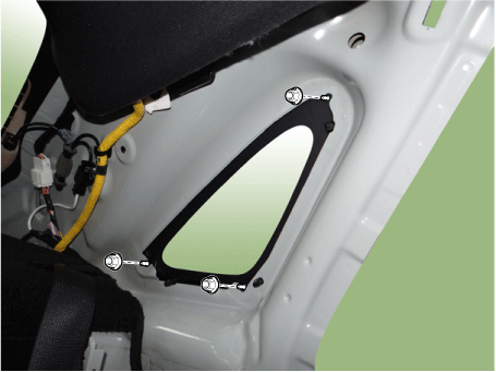 Снимите облицовку стойки задней двери. (См. Отделка салона — «Облицовка задней стойки») |