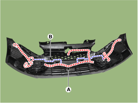 Ослабьте крепежные винты и снимите верхнюю крышку переднего бампера (А).