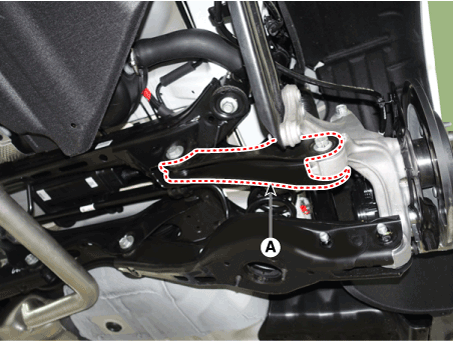 Ослабьте болт и гайку и снимите задний вспомогательный рычаг (А).