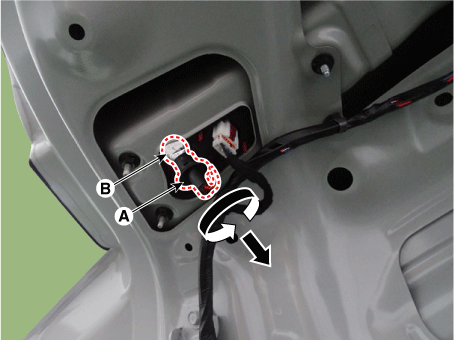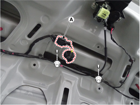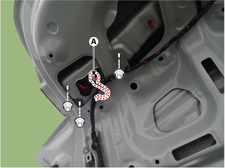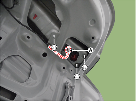 Отсоедините разъем заднего комбинированного фонаря (А) после ослабления орехи.