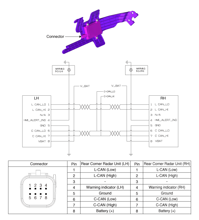 Kia Optima: Система заднего углового радара / Задний угловой радар