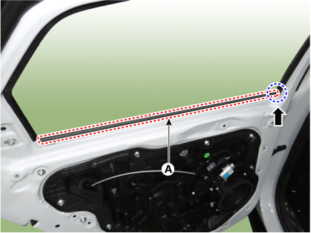 Снимите ремень задней двери внутри уплотнителя (А).