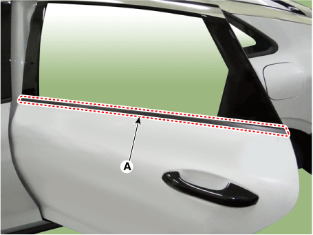 Снимите ремень задней двери снаружи уплотнителя (А).