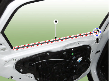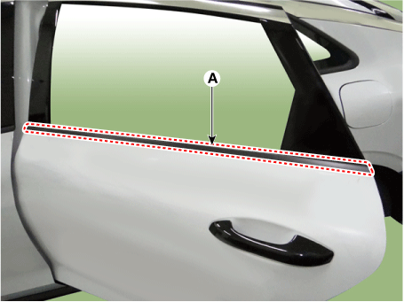 Снимите ремень задней двери снаружи уплотнителя (А).