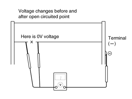 Чтобы проверить наличие разомкнутых цепей, медленно перемещайте измерительный провод к секции где, кажется, существуют открытые цепи. Попробуйте найти точку, где напряжение превращается в 0В. Точка, в которой изменилось напряжение, является разомкнутой цепью. точка.