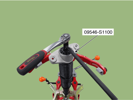 Используя специальный инструмент (09546-S1100), установите самоконтрящуюся гайку.