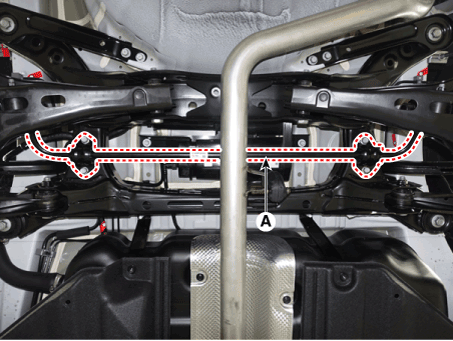 Ослабьте болт и гайку (А), а затем отсоедините заднюю стойку стабилизатора. от заднего нижнего рычага.