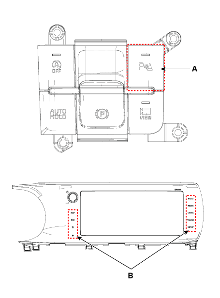 2) Нажмите кнопку управления информационно-развлекательной системой (B).