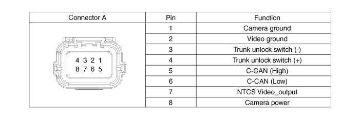 Измерьте выходное напряжение источника питания задней камеры. Подключить к контакту 1 и контакту 8.