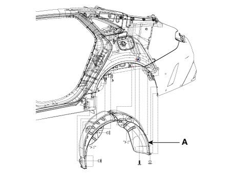 Kia Optima: Боковые молдинги кузова / Защита заднего колеса