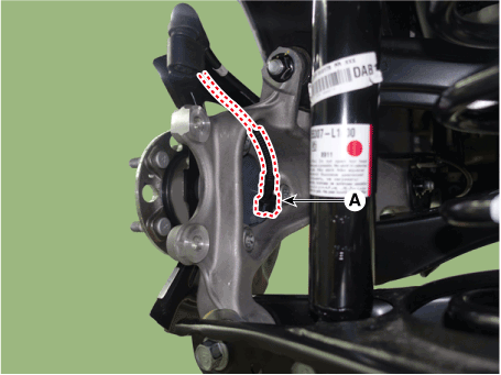 Снимите ступицу в сборе и пылезащитный кожух (A) после ослабления крепления. болты.