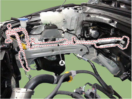 Снимите крышку машинного отделения. G 2.0 NU MPI (см. Механическая система двигателя — «Крышка двигателя») G 2.5 GDI THETA II (см. Механическая система двигателя — «Крышка двигателя») |