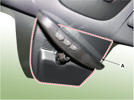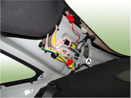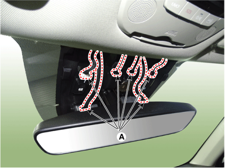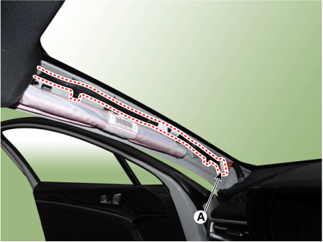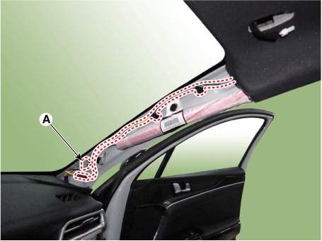 Отсоедините главный разъем обивки крыши (А) и монтажные зажимы в передняя стойка. [левый]