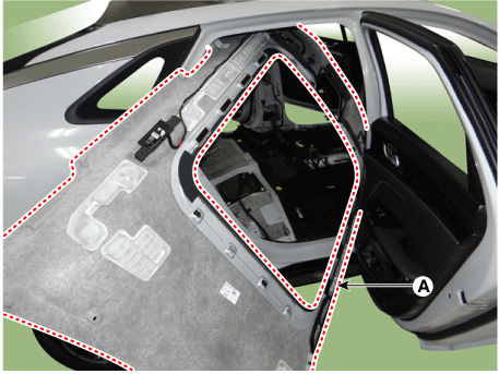 Снимите обивку крыши в сборе (А) с панели кузова и перенесите из автомобиля через заднюю дверь.