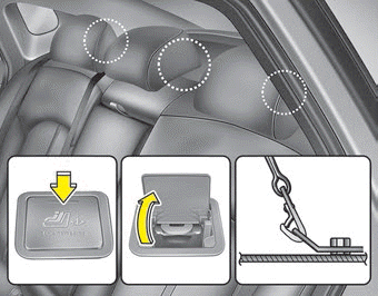 Kia Optima: Установка детской удерживающей системы (CRS) / Крепление детского удерживающего устройства с помощью системы «Tether Anchor»