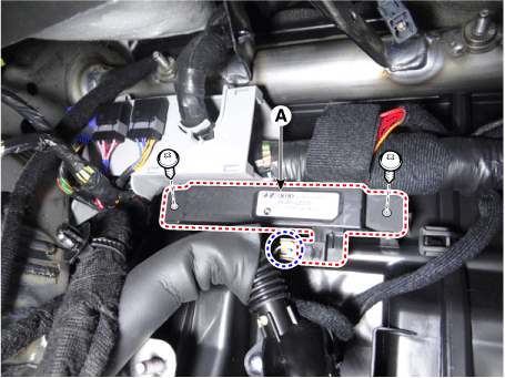 Снимите внешнюю антенну бампера (A), ослабив винты после отсоединение разъема.