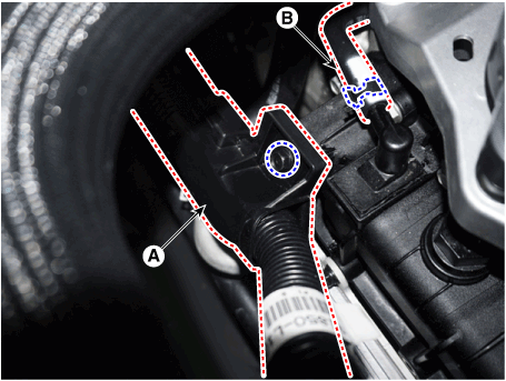 Снимите фиксирующий хомут (А) и шланг сапуна (В).