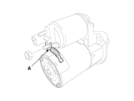 Отсоедините М-клемму (А) на блоке магнитного переключателя.