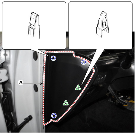 С помощью отвертки или съемника снимите боковую крышку подушки безопасности [LH].