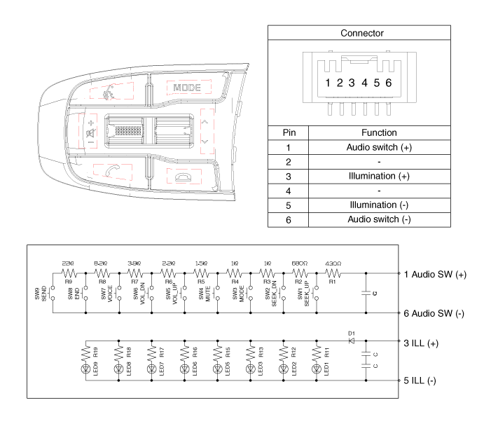 Проверьте сопротивление между клеммами в каждом положении переключателя. [Аудио + Bluetooth + Голос]
