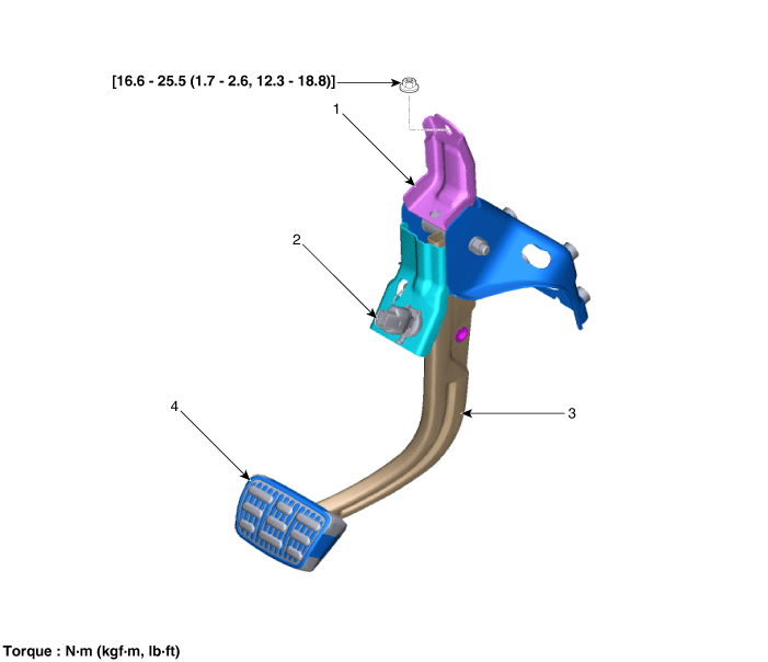 Компоненты и расположение компонентов Компоненты 1. Тормозной элемент в сборе 2. Выключатель стоп-сигнала 3. Рычаг педали тормоза в сборе 4. Накладка педали тормоза ...