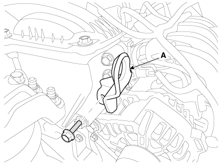 Снимите кронштейн крепления двигателя. (См. Двигатель и трансмиссия в сборе — «Подвеска двигателя») |