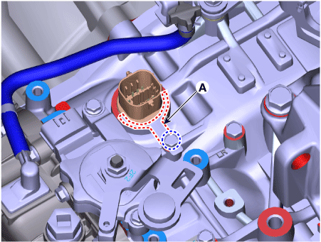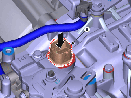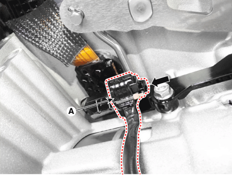 Снимите разъем электромагнитного клапана (А), нажав вниз с коробки передач.
