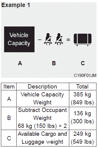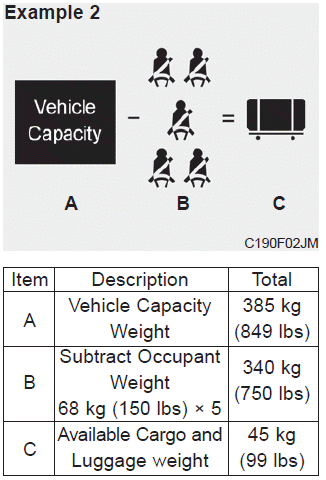 4. Полученная цифра равна доступному количеству грузов и багажа. емкость. Например, если количество «XXX» равно 635 кг (1400 фунтов) и будет в вашем автомобиле должно быть пять пассажиров весом 68 кг (150 фунтов), количество доступного груза а грузоподъемность багажа составляет 295 кг (650 фунтов).
