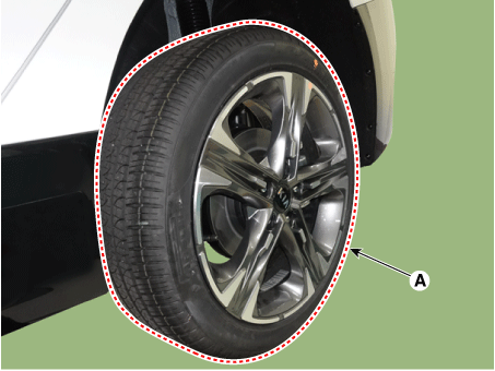 Снимите колесо и шину (А).