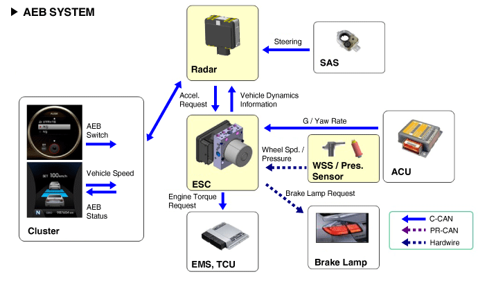 Руководство по ремонту и обслуживанию Kia Picanto JA 2017-2023 гг. / Тормозная система / Система помощи при экстренном торможении (AEB)