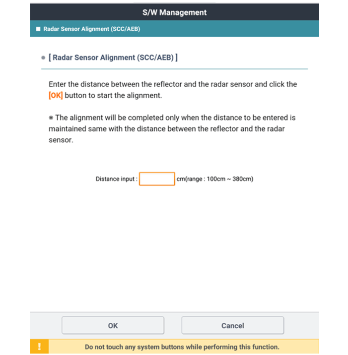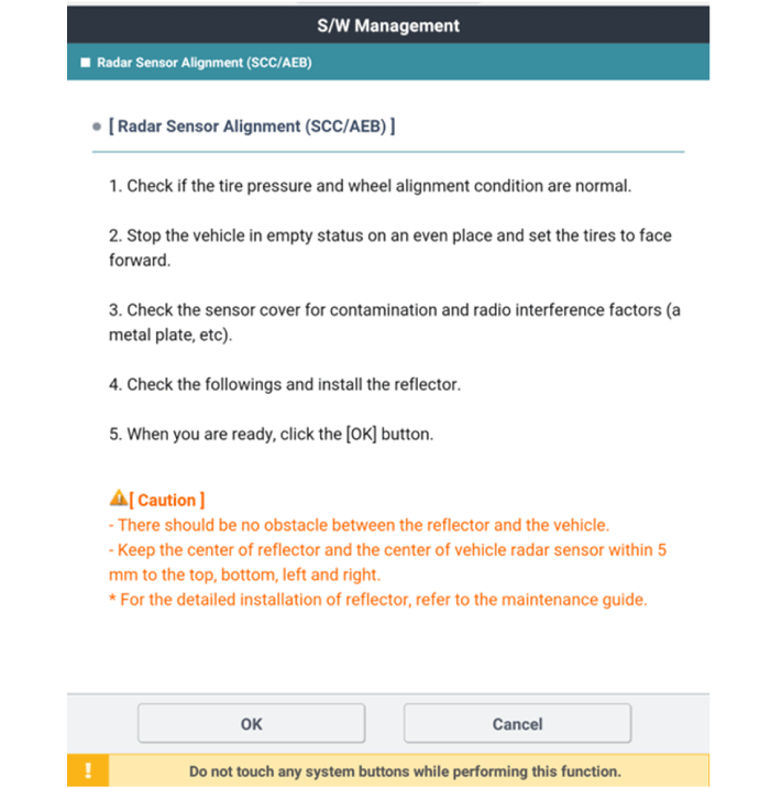 Быть Убедитесь, что автомобиль не движется и не испытывает вибраций, когда выполнение выравнивания датчиков (вход/выход или открытие/закрытие дверей).
