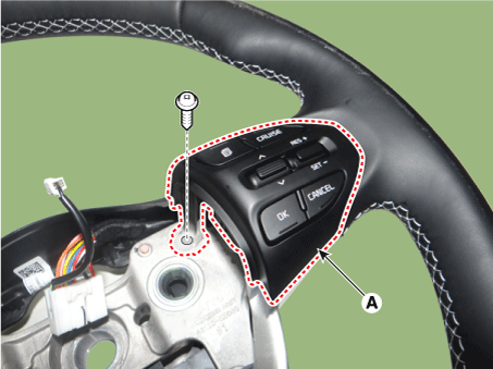 Снимите пульт дистанционного управления с рулевого колеса (А), предварительно ослабив крепежные винты.