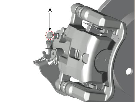Ослабьте винт для прокачки правого заднего тормоза (А), чтобы воздух вышел из системы. Затем надежно затяните прокачной винт.